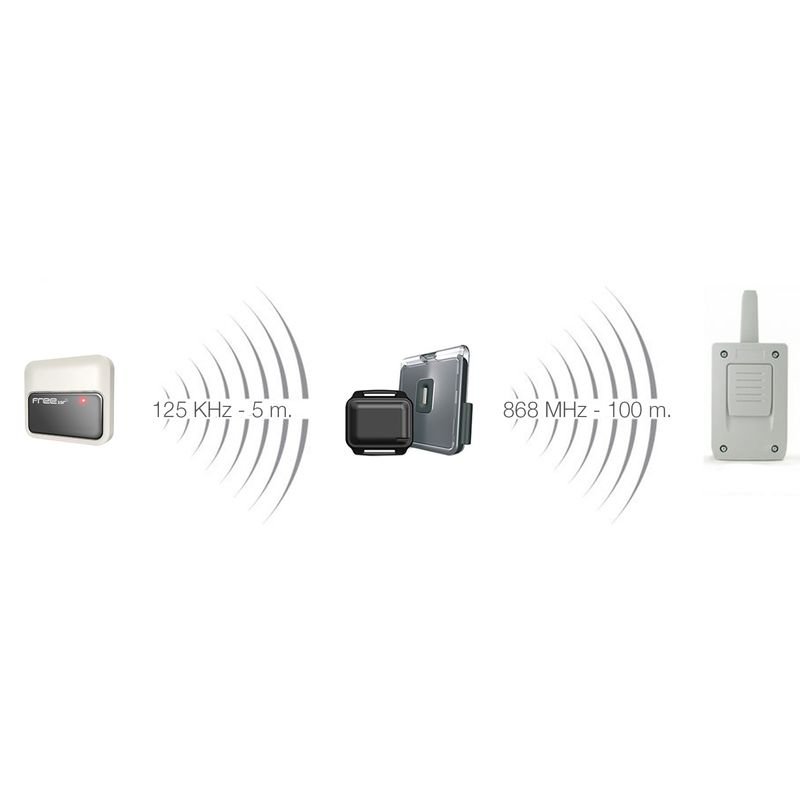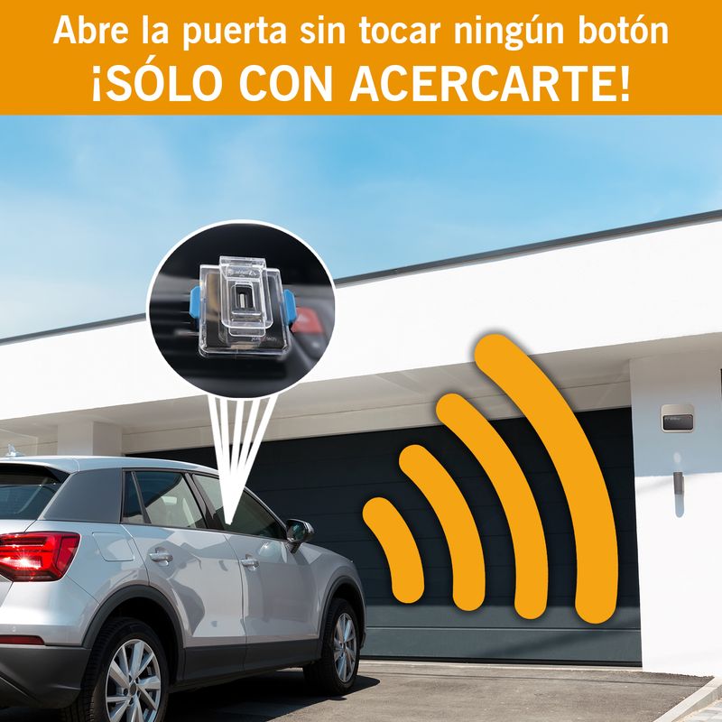 Approchez-vous à 5 mètres du lecteur avec la télécommande et sans appuyer sur le bouton, la porte s'ouvre. Idéal pour entrer avec la voiture, la moto ou le taureau de charge et ne pas avoir à quitter le volant ou le guidon pour ouvrir la porte du garage