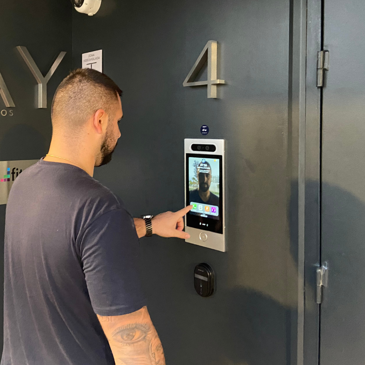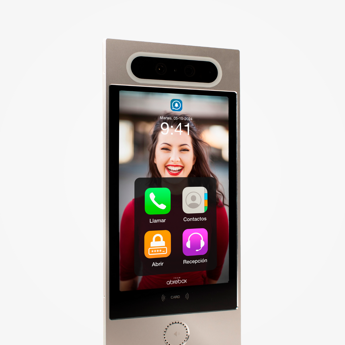 Kit de control de acceso táctil con pantalla de 10,1", diseñado para su instalación en los accesos comunes de la Comunidad. Proporciona seguridad avanzada, gestión de accesos y comunicación inteligente, funcionando además como videoportero moderno de altas prestaciones para la comunicación con las viviendas.
