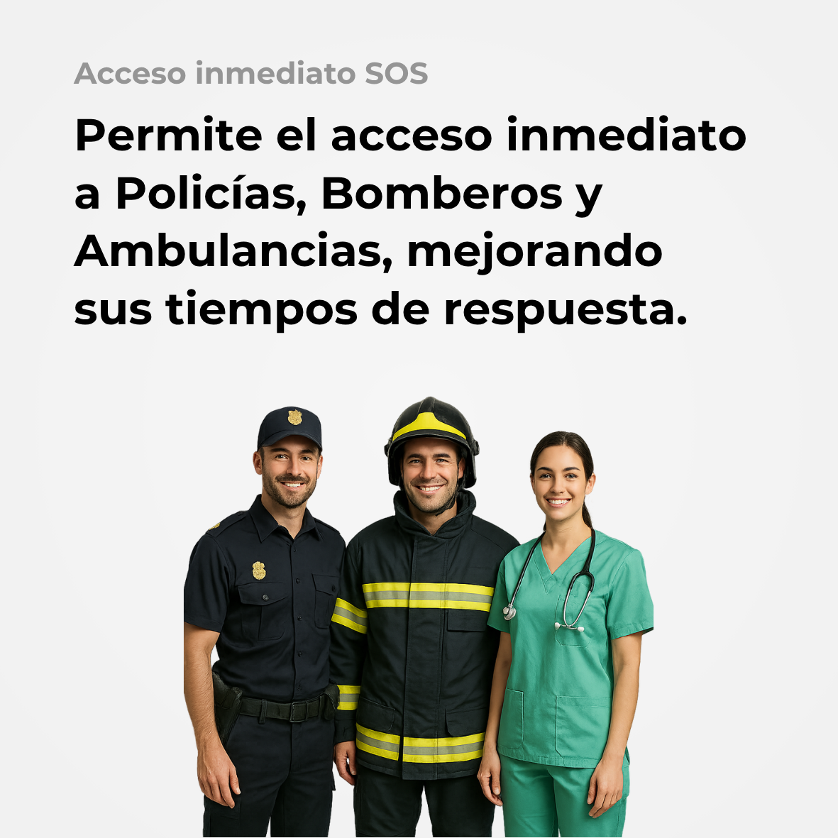 - Acceso inmediato SOS a Policías, Bomberos, Ambulancias...
